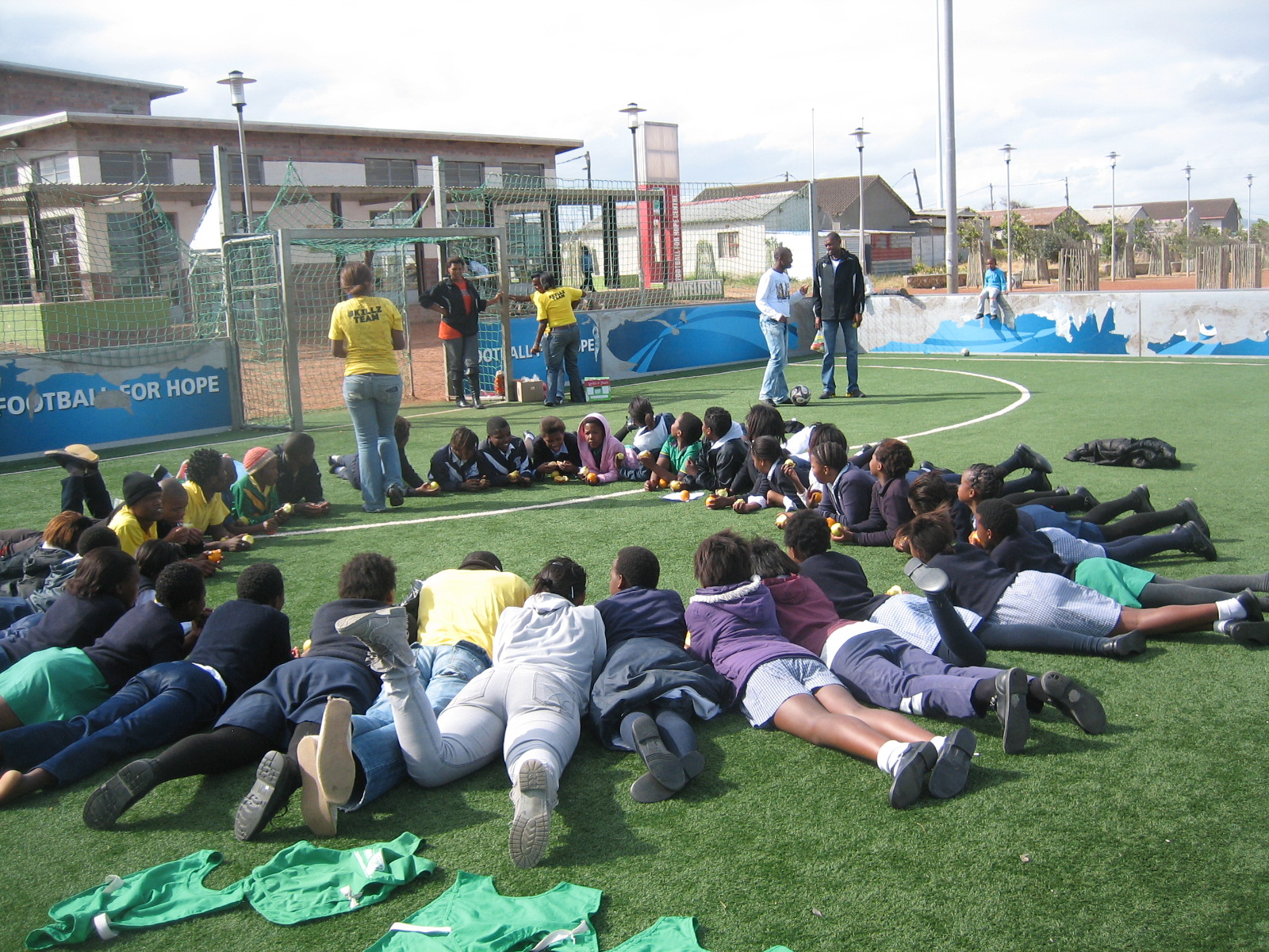 At the FFH in Khayelitsha, GRS was running its Skillz Street curriculum. This curriculum is targeted at young girls in the surrounding community aged 12-17 that uses soccer to instill knowledge about HIV risks/preventions, sexual and gender violence, and a number of other life skills lessons. More than anything it brings together about 100 girls from different schools every Wednesday to the centre for a good 3 months where local coaches from the township build relationships and are able to make a direct impact in their lives. At the FFH centre there are a number of other community programs run such as photography, pre-school program (that I hope to help out with), community soccer league, etc.